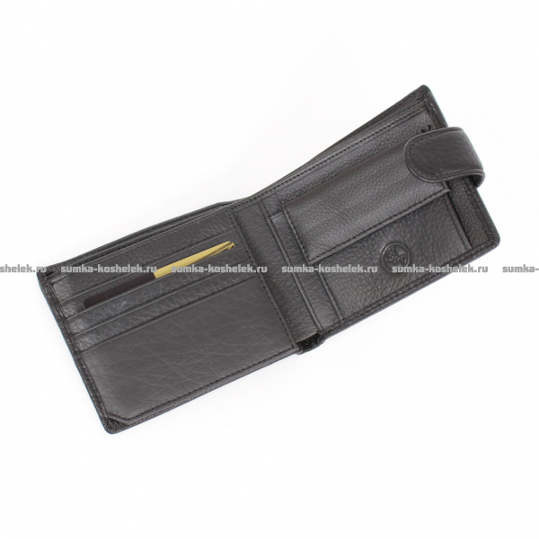 Мужской кожаный кошелек HT 168-33 изготовлен из натуральной кожи высокого качества. Портмоне закрывается хлястиком на кнопке, открывается как книжка, внутри предусмотрено два отделения для денежных купюр, одно потайное отделение для купюр для денежных купюр, пять отсеков для пластиковых и банковских карт, одно отделение для мелочи на клапане с кнопкой, одно отделение для пропуска, удостворения или студенческого билета. Удобные размеры портмоне позволяет носить в сумке, в кармане или в руке. В комплекте брендовая коробка. Отличный подарок для любимого мужчины на любой праздник.
